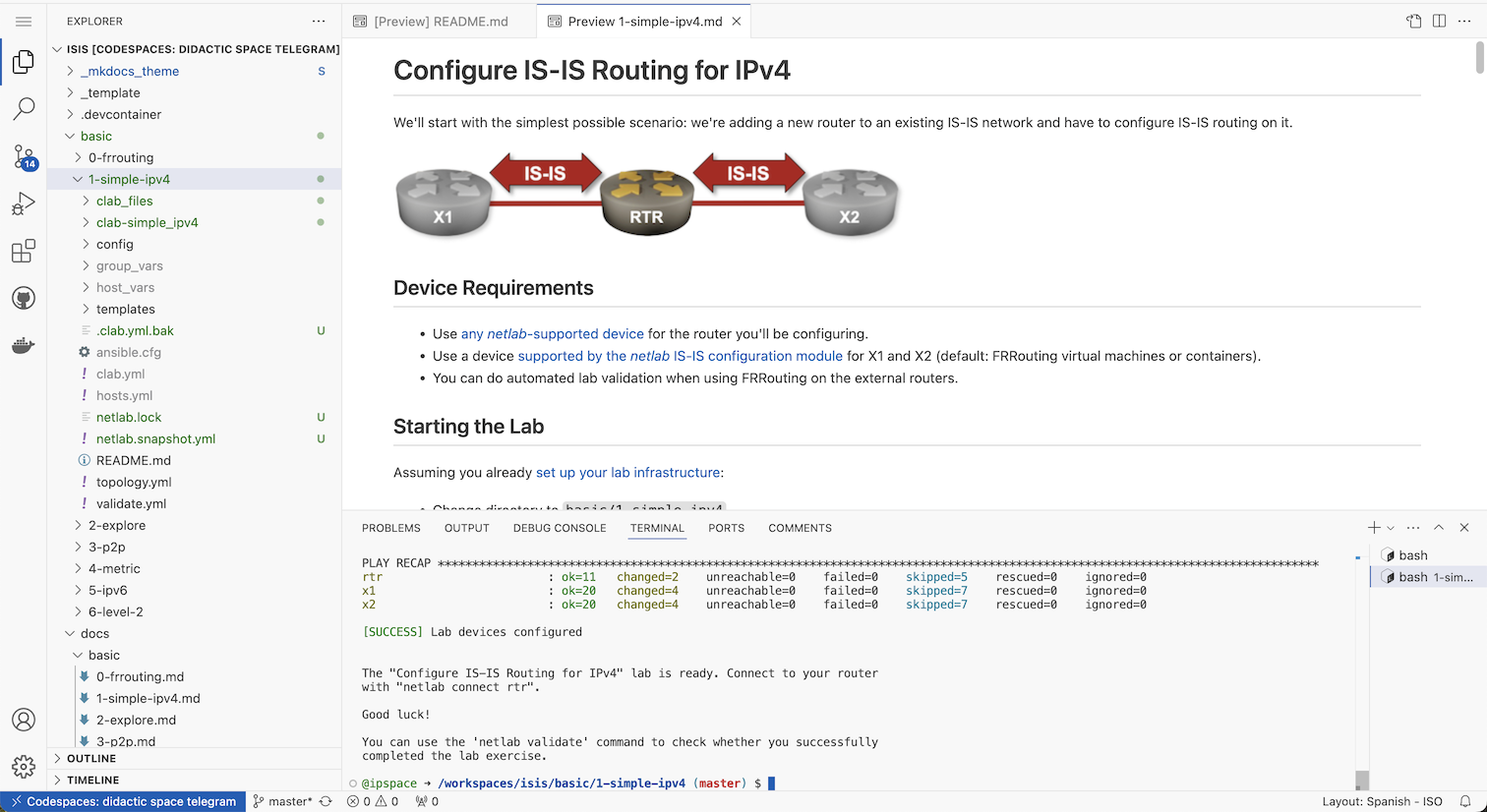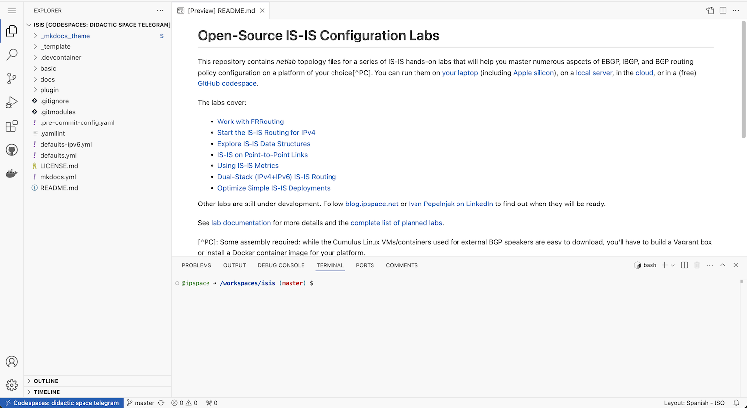 - Create a new codespace for your IS-IS labs or connect to an existing codespace.
